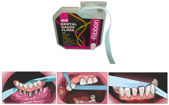 對于種植牙根柱、缺齒、牙齦萎縮后的長牙、義齒和牙齒傾斜的牙患者們會覺得用寬牙線X-Ribbon來清潔牙齒更加有效。