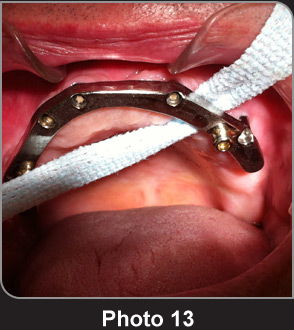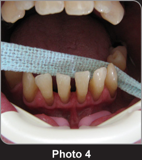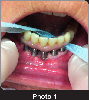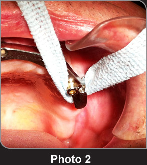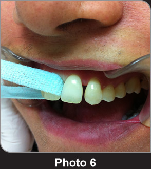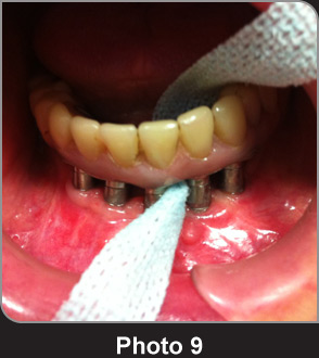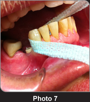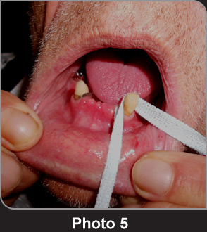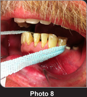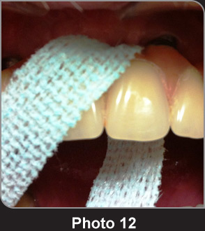 寬牙線X-Ribbon?用于清潔種植齒橋的案例。 寬大的粗紗布條圍繞牙齒和齒橋表面進行清潔極其有效。