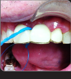 結(jié)實(shí)又能彎曲的穿引頭很輕松地穿過11和21之間的牙冠縫隙。